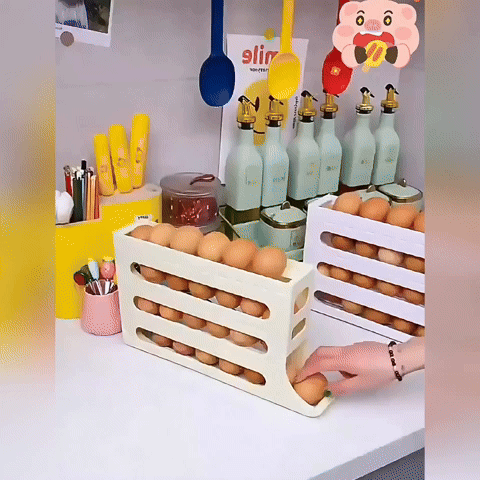 Organiza tus huevos de forma práctica y elegante con nuestro Portahuevos Deslizable de 4 Niveles. Su diseño inteligente permite que, al sacar un huevo, los demás se deslicen automáticamente hacia adelante gracias a su ligera inclinación.